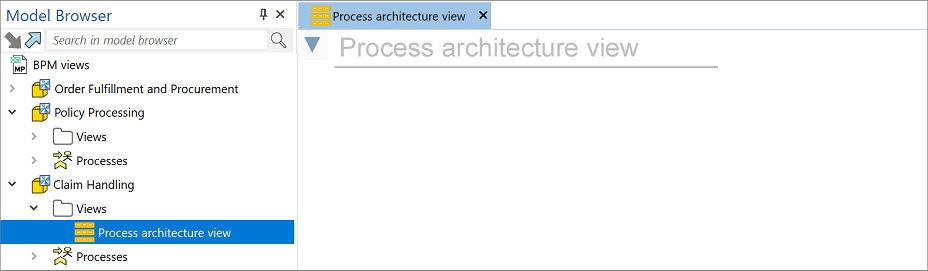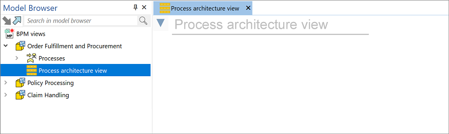 The "Order Fulfillment and Procurement" model from the example model package is used for this procedure. All processes are located in one location. You can download the model package at the bottom of this page.