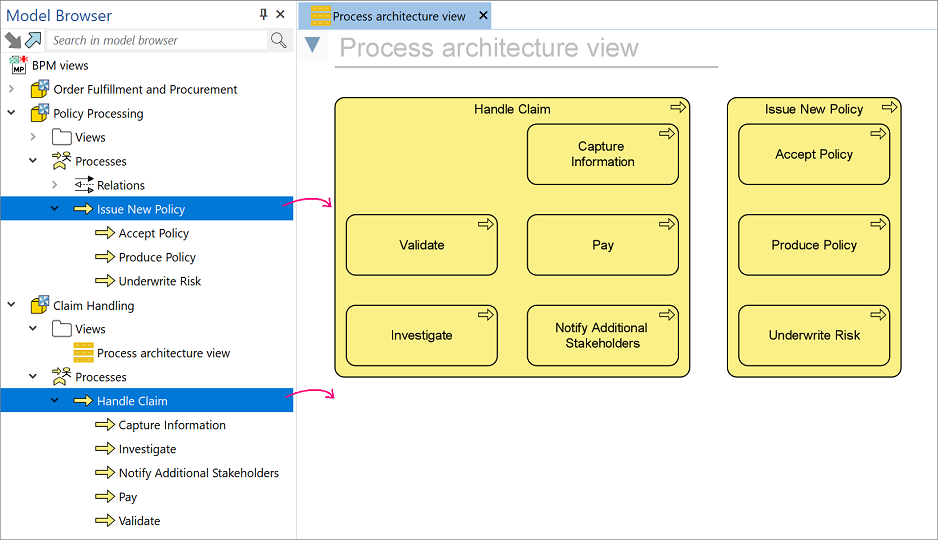 Both approaches are illustrated below, using processes from the example model package that you can download at the bottom of this page.