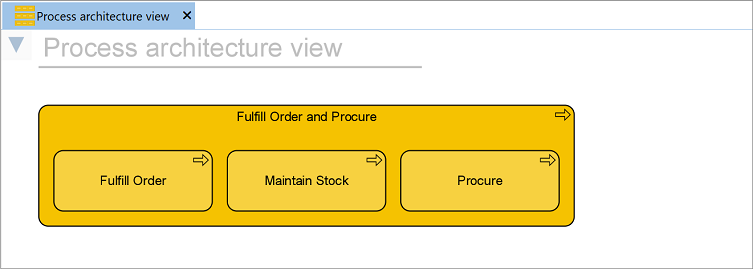 The following ArchiMate® objects can be used in the Process architecture view: Business processes, Business activities, and Business interactions.